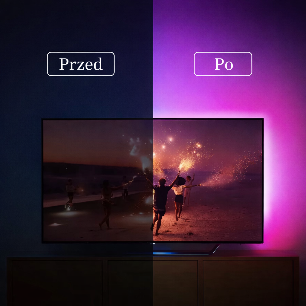 Upewnij się, że pasek LED jest podłączony do stabilnego źródła zasilania USB (np. port w telewizorze lub certyfikowana ładowarka). Nie narażaj urządzenia na wilgoć – produkt nie jest wodoodporny (IP20).