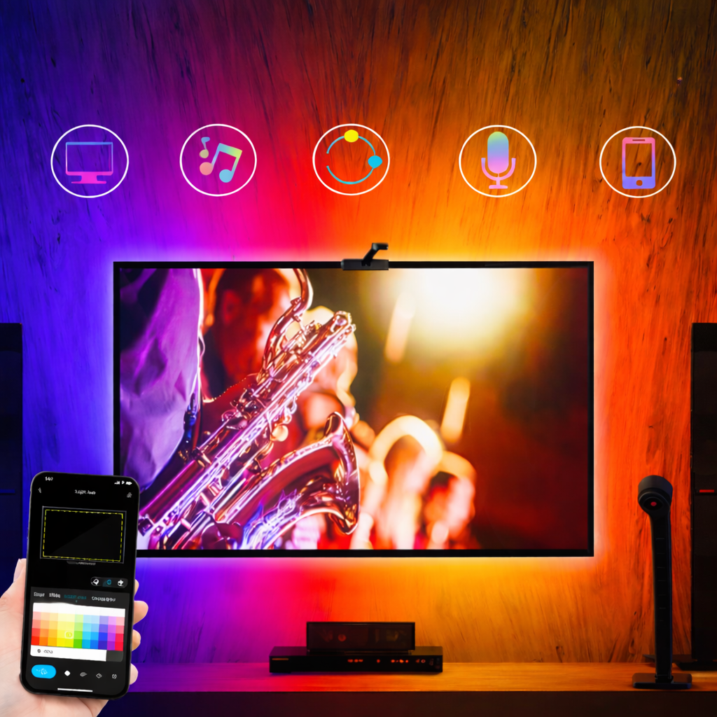 Z Lumosync TV™ doświadczysz obrazu i dźwięku jak nigdy dotąd. Dzięki technologii RGBIC każdy segment paska LED świeci osobnym kolorem, co pozwala stworzyć prawdziwie kinowy klimat. Światła automatycznie reagują na kolory na ekranie, co zapewnia pełne zanurzenie w filmie, grze lub muzyce.